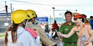 Công An Long An lại ‘diễn’ màn tặng nước suối cho...