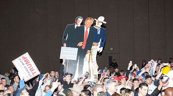 Hình nộm của cố Tổng Thống Ronald Reagan (trái), Donald Trump và cố tài