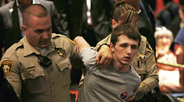 Michael Steven Sandford, 20 tuổi, tiến gần một cảnh sát hôm cuối tuần, nói rằng muốn được xin chữ ký của ông Trump, rồi bất ngờ tìm cách cướp súng.