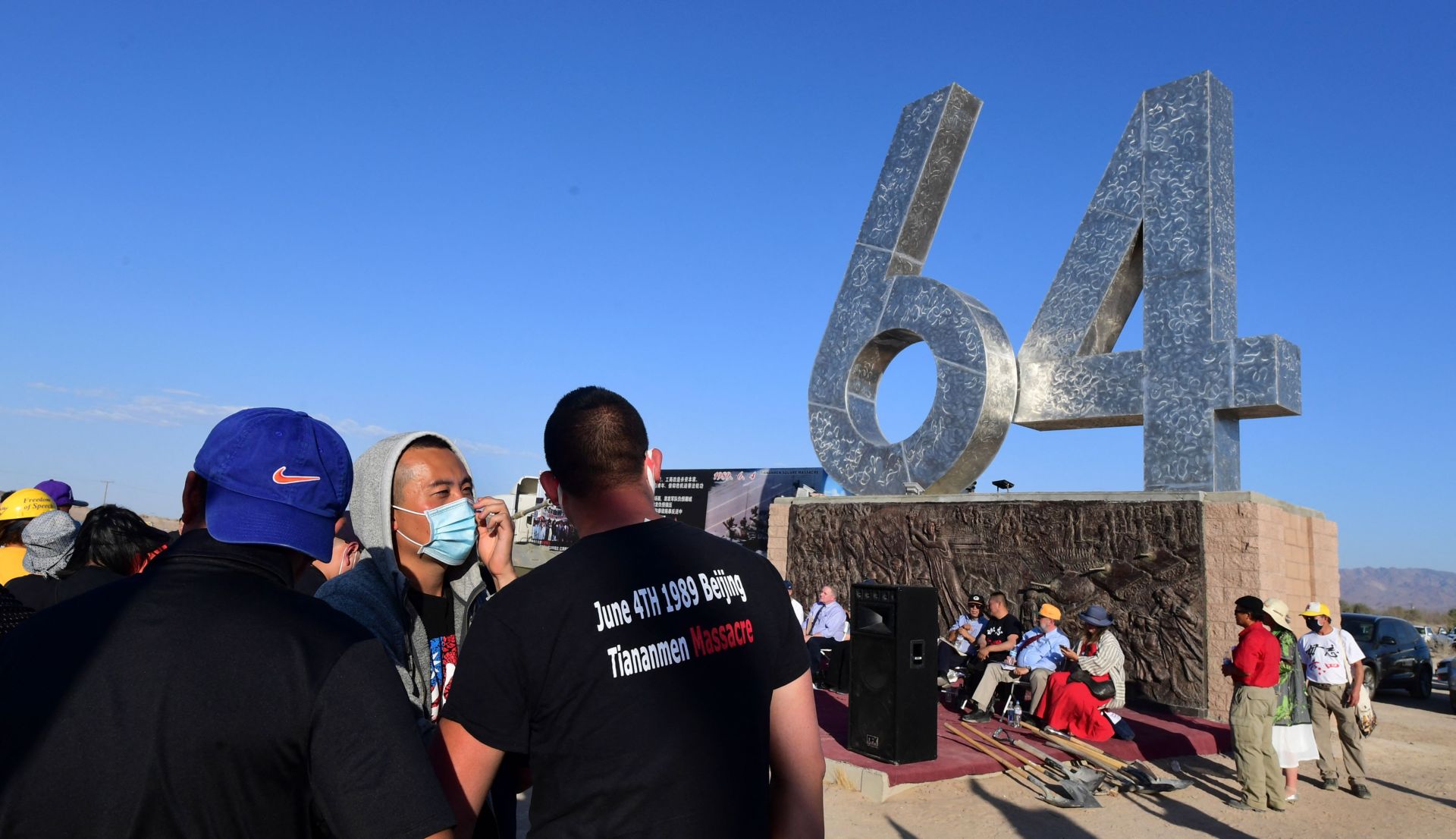 Hôm Thứ Sáu, 4 Tháng Sáu, 2021, rất nhiều người gốc Hoa xuống đường để biểu tình trước lãnh sự quán Trung Quốc tại Los Angeles, California, để tưởng niệm 32 năm cuộc thảm sát ở Thiên An Môn. Nhiều người còn có mặt tại Tượng Đài 6-4, tức là ngày 4 Tháng Sáu, ở sa mạc Mojave để tưởng niệm. (Hình: Frederic J. Brown/AFP via Getty Images)