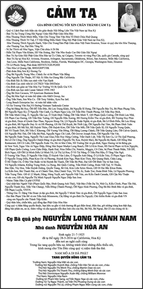 Cụ Bà Quả Phụ Nguyễn Long Thành Nam