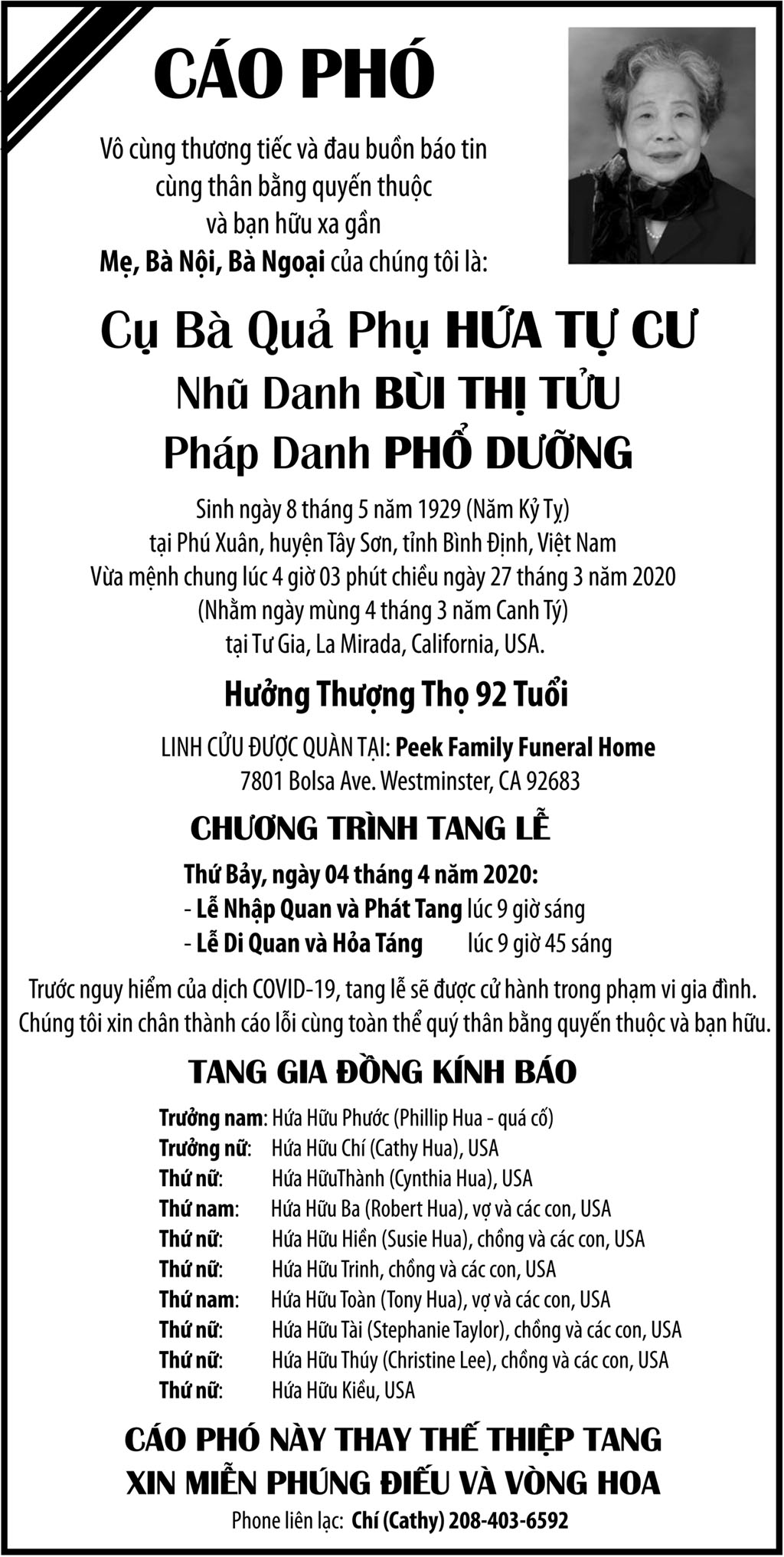 Cụ Bà Quả Phụ Hứa Tự Cư March 30, 2020 : 6:07 PM FacebookXEmailPrint FacebookXEmailPrint CO THE BAN QUAN TAM Ông Vũ Công Thành April 17, 2026 : 6:34 PM Bác Sĩ Trần Cao Để April 17, 2026 : 6:30 PM Cụ Ông Nguyễn Hữu Thời April 17, 2026 : 6:28 PM Ông Đỗ Duy Đức April 17, 2026 : 6:26 PM Bà Quả Phụ Trần Huyến (nhũ danh Bùi Thị Chi) April 15, 2026 : 7:12 PM Bà Maria Châu Kim Loan April 15, 2026 : 7:10 PM Ông Phanxicô Xaviê Vũ Đình Khang April 14, 2026 : 7:11 PM Bà Ngạc Thị Sơn April 14, 2026 : 7:09 PM [disqus_shortcode_codeable] Phân Ưu Bà Trần Thị Sâm April 21, 2026 : 6:15 PM Cụ Bà Trần Thị Sâm April 21, 2026 : 6:13 PM Đồng Chí Nguyễn Hữu Thời April 21, 2026 : 6:05 PM Cụ Ông Nguyễn Hữu Thời April 19, 2026 : 7:12 PM Bác Sĩ Trần Cao Đễ April 17, 2026 : 6:38 PM Cảm Tạ Luật Sư Nguyễn Xuân Nghĩa April 17, 2026 : 6:36 PM Cụ Ông Phạm Văn Khỏe April 2, 2026 : 6:09 PM Bà Nguyễn Thị Thúy Ban March 30, 2026 : 4:08 PM Bà Quả Phụ Lê Khánh March 27, 2026 : 6:17 PM Tưởng Nhớ Huynh Trưởng Du Ca Nguyễn Thiện Cơ January 16, 2026 : 4:54 PM Những buổi tối nơi căn nhà trong hẻm Thành Thái October 19, 2025 : 12:59 PM Doãn Quốc Sỹ, nhà văn, nhà giáo October 19, 2025 : 12:48 PM Nhớ Trưởng Hướng Đạo – Nhà văn Nhật Tiến October 4, 2025 : 5:41 PM Em gái nhạc sĩ Nguyễn Vũ viết về anh trai: Nụ cười hiền hòa... October 2, 2025 : 7:13 PM
