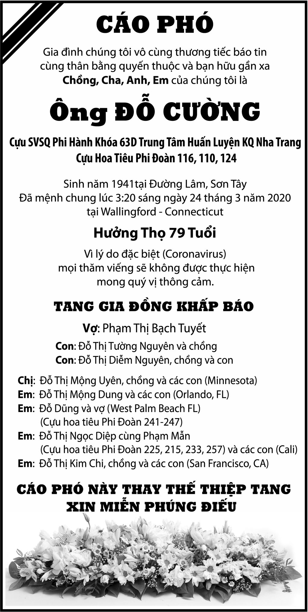 Ông Đỗ Cường March 25, 2020 : 4:33 PM FacebookXEmailPrint FacebookXEmailPrint CO THE BAN QUAN TAM Ông Vũ Công Thành April 17, 2026 : 6:34 PM Bác Sĩ Trần Cao Để April 17, 2026 : 6:30 PM Cụ Ông Nguyễn Hữu Thời April 17, 2026 : 6:28 PM Ông Đỗ Duy Đức April 17, 2026 : 6:26 PM Bà Quả Phụ Trần Huyến (nhũ danh Bùi Thị Chi) April 15, 2026 : 7:12 PM Bà Maria Châu Kim Loan April 15, 2026 : 7:10 PM Ông Phanxicô Xaviê Vũ Đình Khang April 14, 2026 : 7:11 PM Bà Ngạc Thị Sơn April 14, 2026 : 7:09 PM [disqus_shortcode_codeable] Phân Ưu Bà Trần Thị Sâm April 21, 2026 : 6:15 PM Cụ Bà Trần Thị Sâm April 21, 2026 : 6:13 PM Đồng Chí Nguyễn Hữu Thời April 21, 2026 : 6:05 PM Cụ Ông Nguyễn Hữu Thời April 19, 2026 : 7:12 PM Bác Sĩ Trần Cao Đễ April 17, 2026 : 6:38 PM Cảm Tạ Luật Sư Nguyễn Xuân Nghĩa April 17, 2026 : 6:36 PM Cụ Ông Phạm Văn Khỏe April 2, 2026 : 6:09 PM Bà Nguyễn Thị Thúy Ban March 30, 2026 : 4:08 PM Bà Quả Phụ Lê Khánh March 27, 2026 : 6:17 PM Tưởng Nhớ Huynh Trưởng Du Ca Nguyễn Thiện Cơ January 16, 2026 : 4:54 PM Những buổi tối nơi căn nhà trong hẻm Thành Thái October 19, 2025 : 12:59 PM Doãn Quốc Sỹ, nhà văn, nhà giáo October 19, 2025 : 12:48 PM Nhớ Trưởng Hướng Đạo – Nhà văn Nhật Tiến October 4, 2025 : 5:41 PM Em gái nhạc sĩ Nguyễn Vũ viết về anh trai: Nụ cười hiền hòa... October 2, 2025 : 7:13 PM