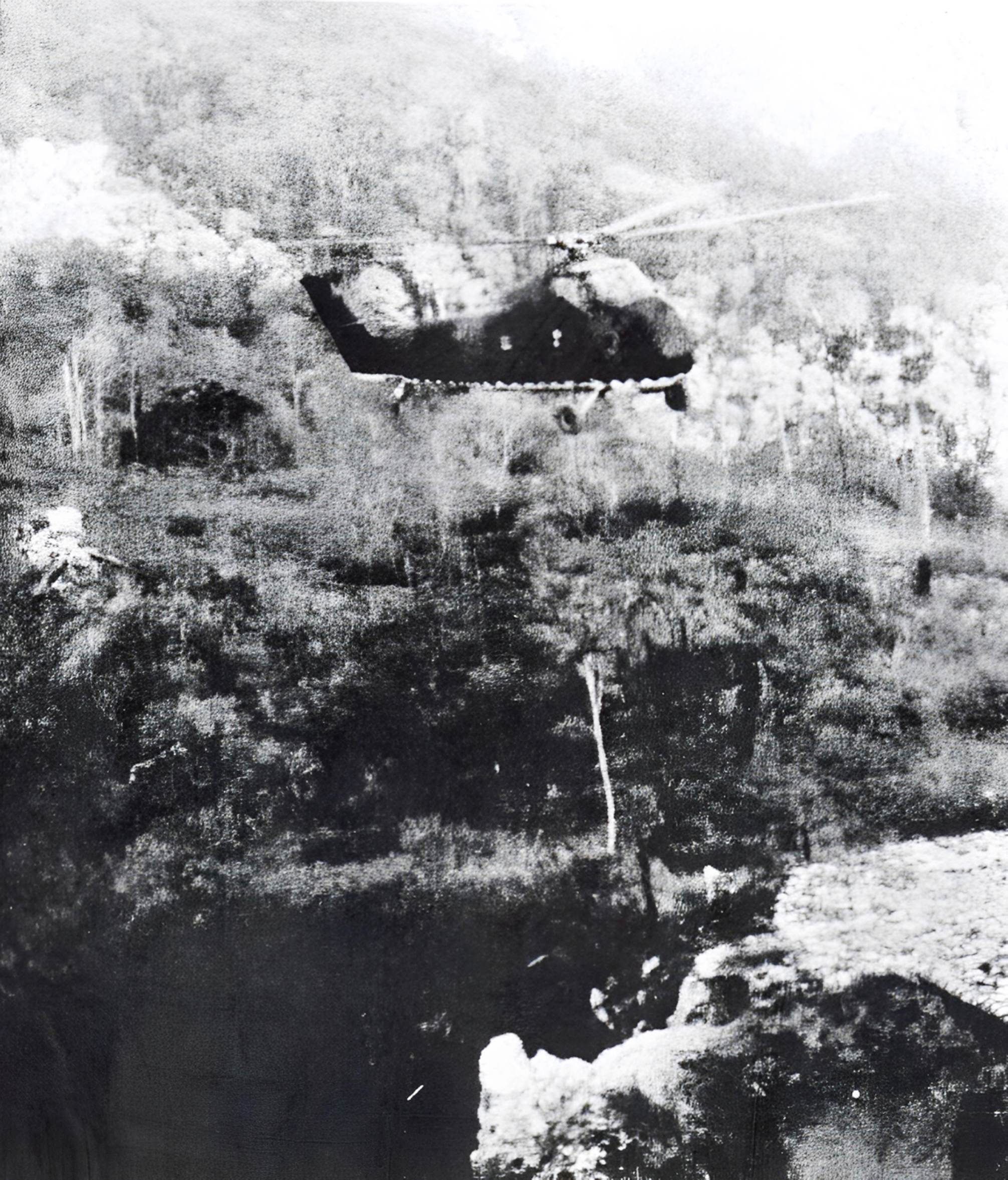 Ông nhớ lại: “Một hôm, khoảng cuối năm 1969 đầu 1970, trong một chuyến bay đi rước một toán, lúc đó tôi mới ra trưởng phi cơ và thường chỉ được xếp bay số ba hoặc số bốn. Tức là khi đi thả hay rước toán, mình sẽ không trực tiếp đáp xuống. Chỉ khi nào có nguy hiểm gì đó mà hai chiếc đầu không làm được thì mới tới phiên mình phải nhào xuống làm nhiệm vụ cứu cấp thôi. Khi bị xếp số ba hay số bốn trở lên thì gọi là đi lòng thòng. Hôm ấy là lần đầu tiên tôi bị súng phòng không 23 ly bắn. Súng phòng không 23 ly rất lợi hại, bởi vì nó bắn đạn dây.”