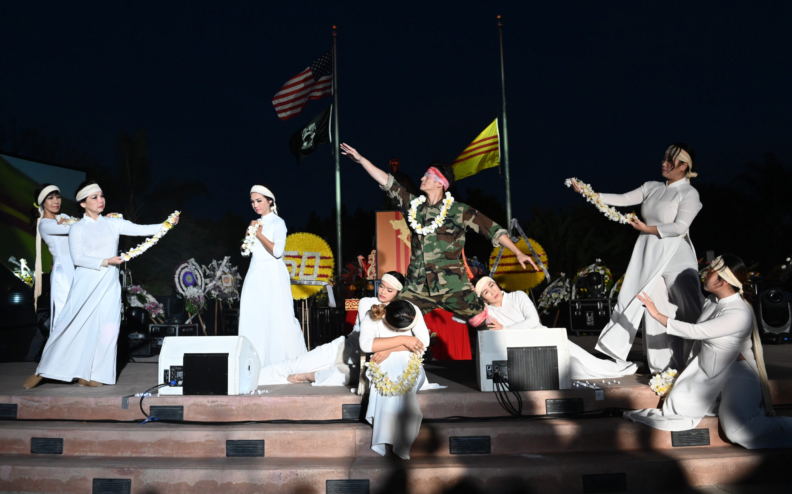 WESTMINSTER, California (NV) – Đêm thắp nến “Tưởng Niệm 50 Năm Tháng Tư Đen-Hành Trình 50 Năm Người Việt Tị Nạn Tìm Tự Do” do Cộng Đồng Người Việt Quốc Gia Nam California tổ chức phối hợp cùng nhiều hội đoàn khác, diễn ra vào chiều Thứ Tư, 30 Tháng Tư, tại Tượng Đài Chiến Sĩ Việt-Mỹ, Westminster.