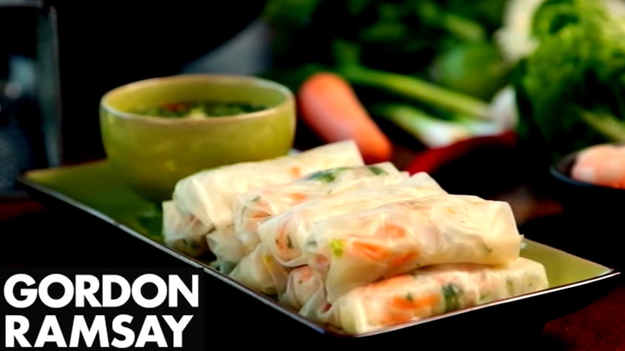 Gỏi cuốn tôm do ông Gordon Ramsay làm. (Hình: chụp từ Youtube của ông)