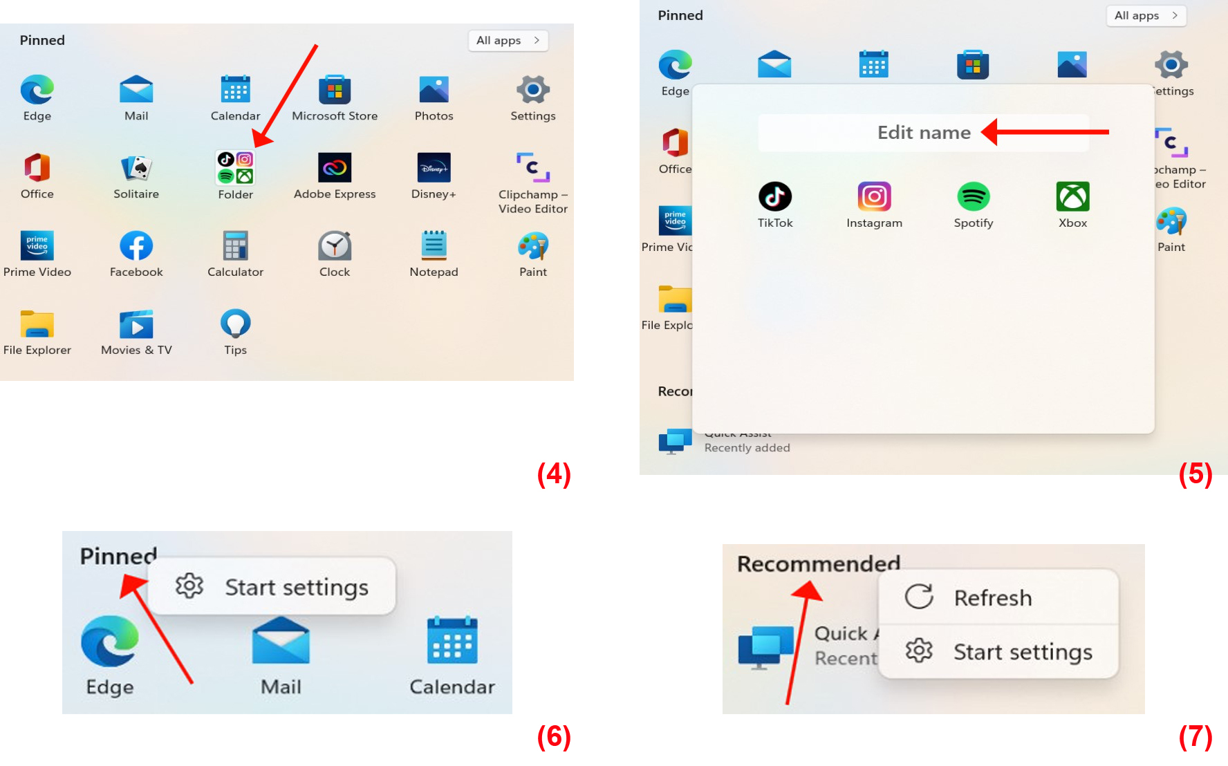Bạn bấm phím phải chuột lên tiêu đề Pinned để nhận liên kết trực tiếp đến cài đặt Settings > Start. Bấm phím phải chuột lên tiêu đề Recommended sẽ hiển thị cùng một liên kết và lệnh Refresh để làm mới danh sách theo cách thủ công (Windows 11 tự động làm mới nội dung được đề nghị theo khoảng thời gian cố định). (Hình 6, 7) (Lê Hoàn)