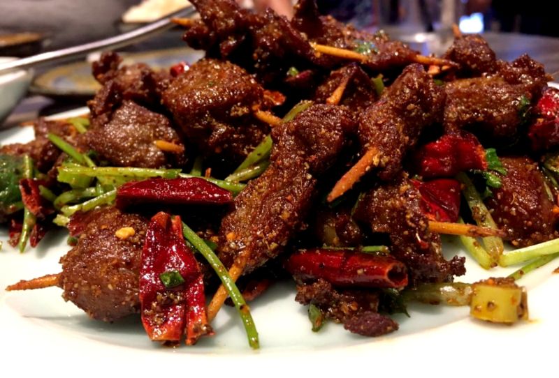 Theo lời hai ông bà Chen, có bốn món phải kêu thử: Đậu hũ mapo, thịt trừu xiên trên tăm, súp cá với ớt đỏ và gà kung pao.