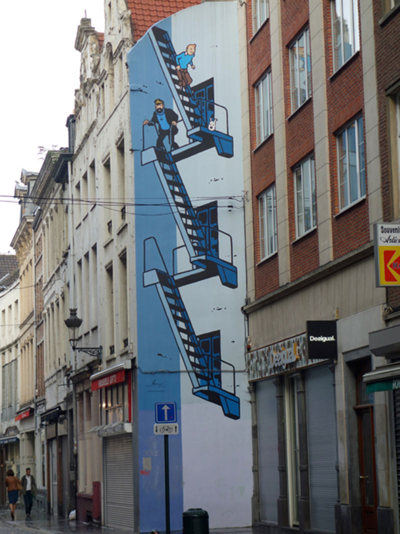 Tượng chú bé có tên Manneken Pis (chú bé đứng tè) làm tôi liên tưởng đến chuyện, vào những thập niên 1970-1990, có ai mà không biết đến nhân vật hoạt hình “cậu bé Tintin” nổi tiếng trên khắp thế giới không nhỉ! Nhưng tôi biết chắc trẻ con Việt Nam thì yêu thích Tintin vô cùng. Ông bố đẻ ra Tintin quê cũng ở Brussels, tên ông là Herge, vì thế Tintin được người dân Bỉ vẽ khắp nơi trong thành phố.