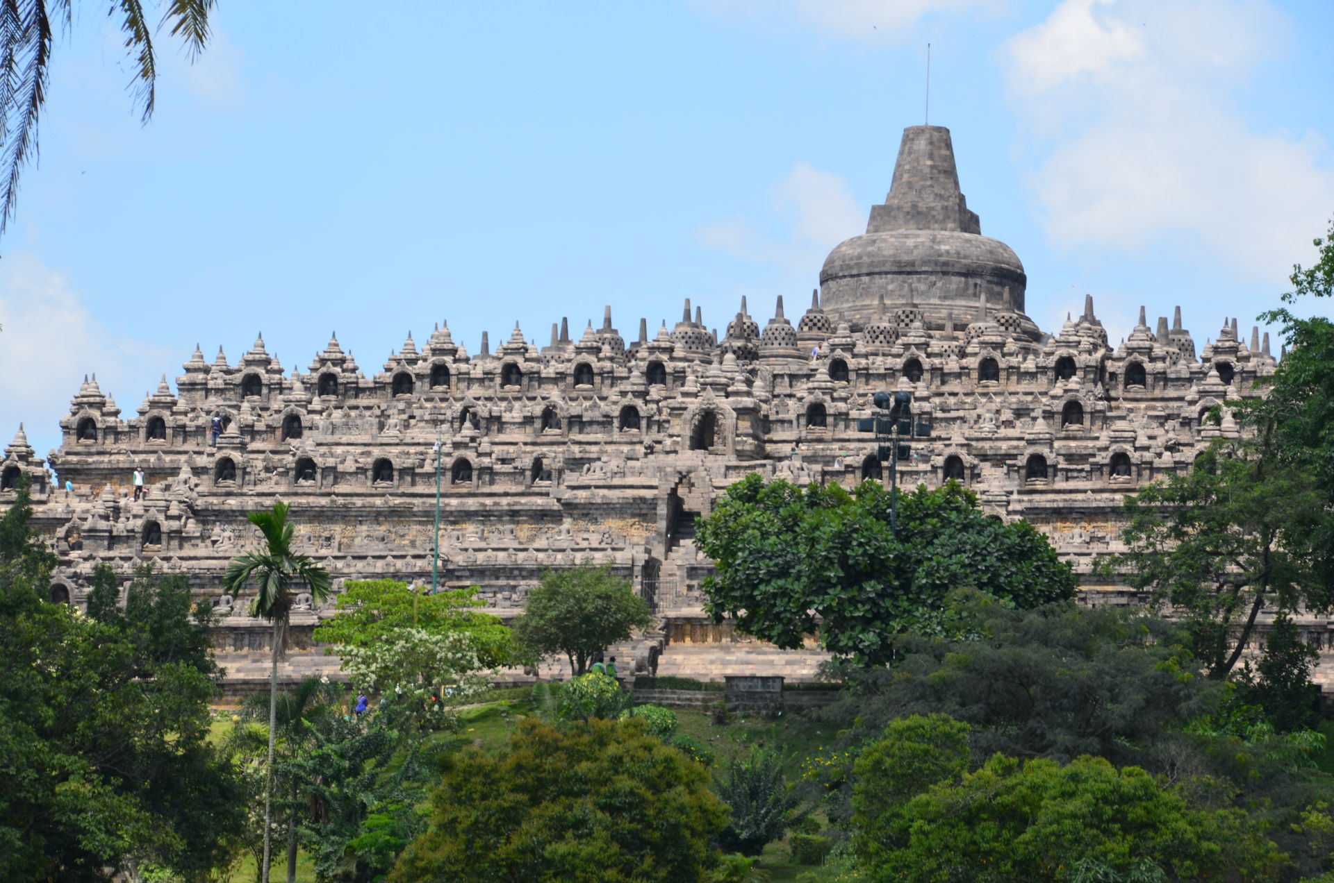 Borobudur Temple được xây dựng vào khoảng thế kỷ thứ 8 và hoàn thành vào giữa thế kỷ 9 nhưng Phật Giáo chỉ ảnh hưởng ở đây khoảng hơn một thế kỷ thì ảnh hưởng Ấn Độ Giáo trở lại. Sau đó Hindu lại phải nhường chỗ cho ảnh hưởng Hồi Giáo dần dần chiếm đa số tại Indonesia cho đến ngày nay. Từ đó đền Borobudur được chôn vùi dưới tro bụi của các ngọn núi lửa chung quanh. Nhưng cũng nhờ vậy mà kiến trúc Borobudur được tro bụi ôm ấp gìn giữ cho đến ngày nay.