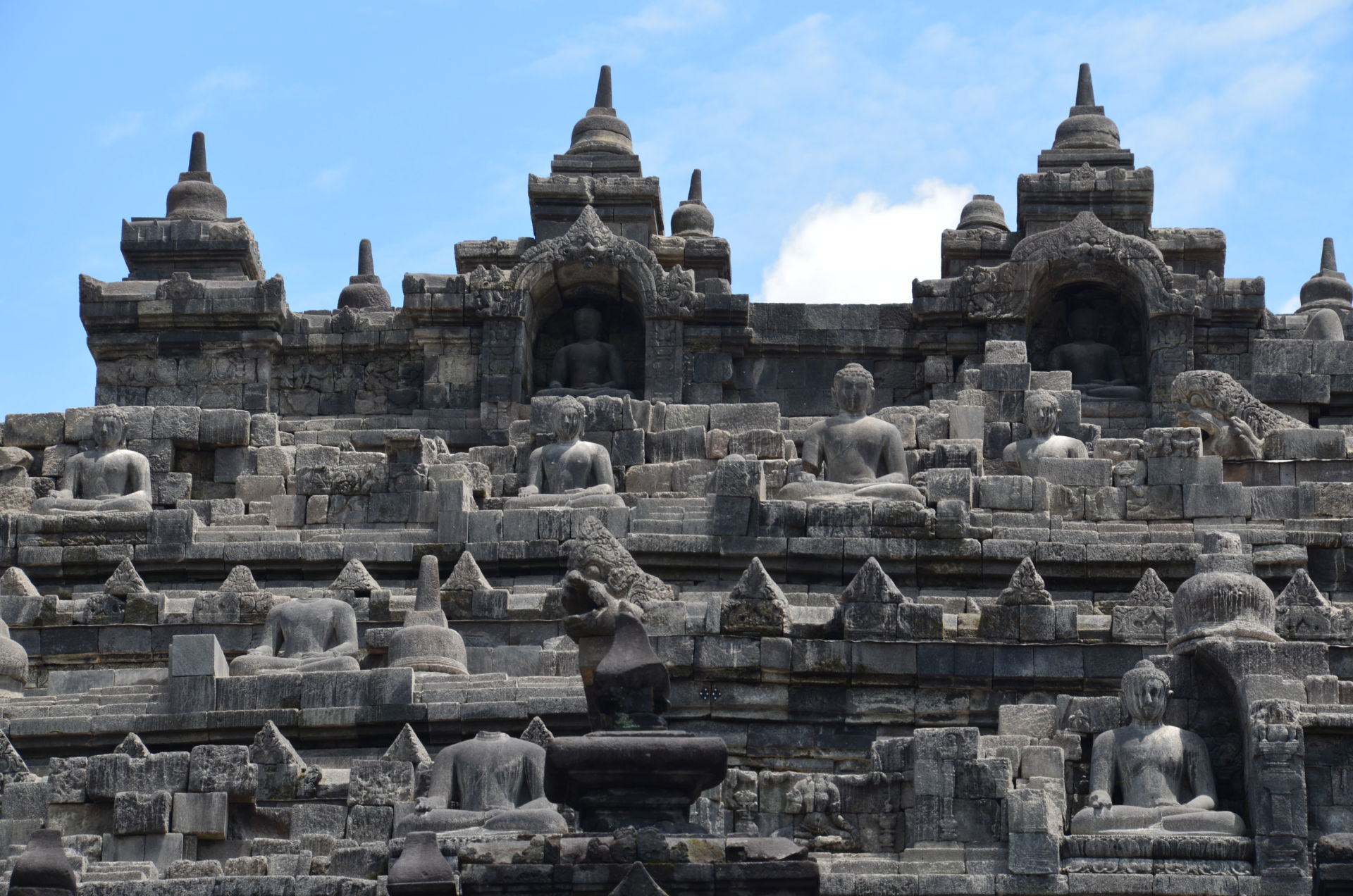 Tôi đến thưởng ngoạn Borobudur dưới một cơn mưa tầm tã. Sáng nắng chiều mưa là chuyện bình thường vào Tháng Giêng tại đất nước Indonesia. Ngắm nhìn kiến trúc to lớn của Borobudur mà lòng thầm cảm ơn ngọn núi lửa Merapi vì nhờ tro bụi của Merapi phủ kín nên Borobudur mới còn tồn tại cho đến khi Thomas Stamford Raffles, một người Anh đến phủi bụi cho Temple ló mặt ra thế giới từ năm 1814. Chính phủ Indonesia và UNESCO đã hai lần trùng tu bức tranh Mạn-đà-la bằng đá này, nhưng những trận động đất thường xảy ra tại đây liệu có phá hủy đi một tuyệt tác của nhân loại không?