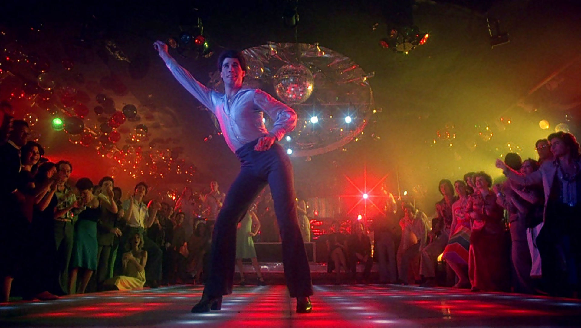 Phim “Saturday Night Fever” đậm văn hóa nhảy disco, phần lớn nhờ ca khúc “Stayin’ Alive.” (Hình: screenmusings.org)