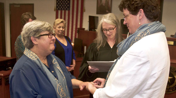 Thẩm Phán Tena Callahan (giữa) chủ trì một đám cưới đồng tính tổ chức