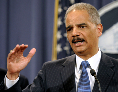 Bộ Trưởng Tư Pháp Eric Holden trong cuộc báo tại Bộ Tư Pháp ở Washington hôm Thứ Tư, 11 Tháng Tư, 2012, loan báo vụ kiện Apple và các nhà xuất bản lớn về việc tăng giá sách điện tử, vi phạm luật chống độc quyền. (Hình: AP/Cliff Owen)