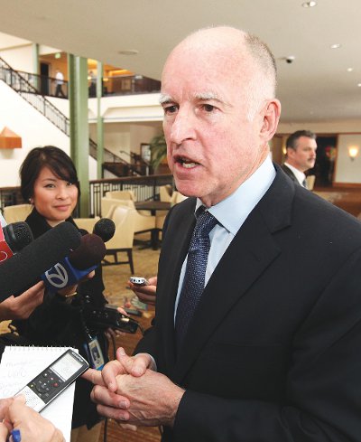 Thống Ðốc Jerry Brown tiểu bang California. Bất kể Obamacare đang bị kiện và đang được phân xử tại Tối Cao Pháp Viện Hoa Kỳ, Thống Ðốc Brown muốn cải tổ y tế giống như vậy ở California. (Hình: AP Photo/Rich Pedroncelli)