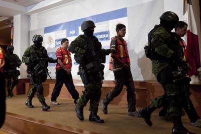 Một băng đảng ma túy Mexico bị cảnh sát bắt giữ tại Mexico City hôm 23 tháng 1, 2012. (Hình: AP Photo/Christian Palma)