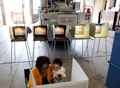 Một nữ cử tri bỏ phiếu tại Chicago. Lãnh đạo đảng Dân Chủ cho rằng Tổng Thống Obama được nhiều phụ nữ ủng hộ hơn so với các ứng cử viên đảng Cộng Hòa. (Hình: John Gress/Getty Images)