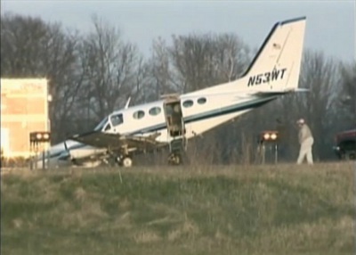 Một động cơ chiếc Cessna hết hẳn xăng, không thể hoạt động, trong khi động cơ còn lại kêu ục ặc vì cũng bắt đầu thiếu xăng. Phi cơ trượt trên đường băng khoảng 1,000 feet trước khi dừng lại, đầu chúi xuống đất.