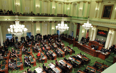 Dân biểu và thượng nghị sĩ tiểu bang California trong một cuộc họp lưỡng viện tại Sacramento. Lương dân biểu, thượng nghị sĩ tiểu bang này cao nhất nước, dù đã có giảm. (Hình: Justin Sullivan/Getty Images)