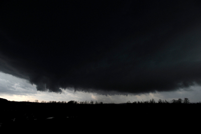Những đám mây đe dọa bão tố nặng nề trên bầu trời Palmyra, Indiana, hôm Thứ Sáu. (Hình: AP Photo/The Courier-Journal,David Lee Hartlage)