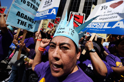 Công đoàn và các nhà vận động biểu tình tại Los Angeles vào ngày cuối của mùa thuế 2012, chống thuế suất thấp cho giới giàu có. (Hình: Kevork Djansezian/Getty Images)