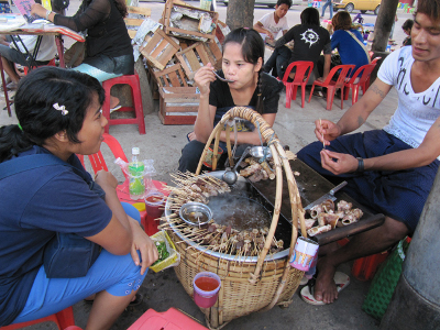 Quán vỉa hè trên đường phố Yangon. (Hình: Trần Nguyên Thắng)