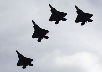 Một phi đội F-22 Raptor bay trình diễn trong lễ tang cố Nghị Sĩ Ted Stevens, bên trên không phận Nghĩa Trang Quốc Gia Arlington, 2010. (Hình: Win McNamee/Getty Images)