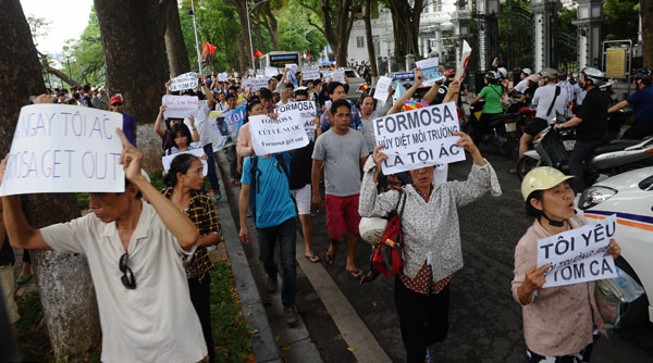 Dân Hà Nội biểu tình ngày 1 Tháng Năm, 2016, chống công ty Formosa xả chất độc ra biển làm cá chết dọc bốn tỉnh miền Trung Việt Nam. (Hình: Hoang Dinh Nam/AFP/Getty Images)