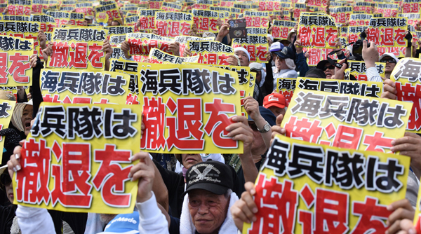 Người biểu tình đòi phải hủy bỏ kế hoạch di dời một căn cứ Mỹ và đưa mọi căn cứ ra khỏi Okinawa, một phần cũng vì sự không hài lòng với sự hiện diện của lính Mỹ ở nơi này.