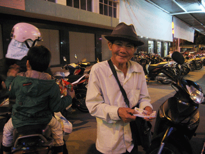 Cụ ông bán vé số tên Tùng, quê Mộ Ðức, Quảng Ngãi, cho biết: “Tui không con cái gì, hai vợ chồng già, bà vợ thì 76 tuổi, tui thì 78 tuổi, bả bị thấp khớp, chẳng làm ăn được chi, tui đi bán vé số nuôi bả, giờ nhà nước cấm bán, chắc là tui phải vào Sài Gòn mà bán, chứ miền Trung này có Ðà Nẵng lớn nhất, tiêu xài mạnh tay nhất, nhưng giờ nó cấm rồi, mình biết chui vào đâu!”