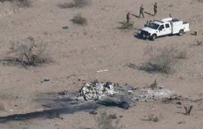 Hình chụp từ trực thăng của truyền hình KPNX-12 nơi hai trực thăng Thủy Quân Lục Chiến bị đụng ở Yuma, Arizona. (Hình: AP Photo/ KPNX-12 News)