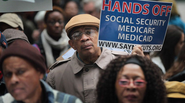 Người cao niên ở Chicago biểu tình phản đối việc chính phủ dự tính cắt bớt tiền An Sinh Xã Hội, Medicare, Medicaid. (Hình: Getty Images/Scott Olson)