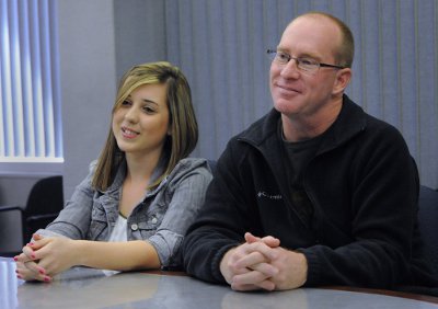 Nữ sinh Jordan Powers, 18 tuổi, và James Hooker, trả lời phỏng vấn báo The Modesto Bee về mối quan hệ hai người. Thầy giáo Hooker bỏ vợ, bỏ con, bỏ việc làm ở Enochs High School để sống với Powers, học sinh lớp 12. Cảnh sát Modesto đang điều tra xem hai người có quan hệ gì bất hợp pháp trước khi cô gái đủ 18 tuổi. (Hình: AP Photo/The Modesto Bee, Debbie Noda)