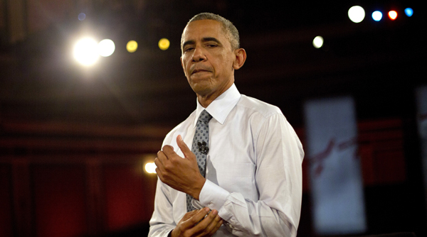 Tổng Thống Barack Obama chuẩn bị trả lời câu hỏi trong buổi gặp gỡ người dân tại Indiana. (Hình: AP Photo/Pablo Martinez Monsivais)