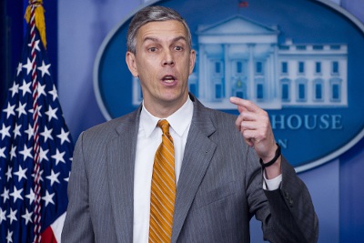 Bộ Trưởng Giáo Dục Arne Duncan nói về vấn đề lãi suất vay tiền của sinh viên, ở phòng họp báo Brady trong tòa Bạch Ốc, sáng Thứ Sáu 20 tháng 4. (Hình: Saul Loeb/Getty Images)