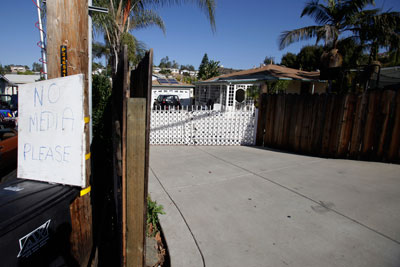 Tấm bảng với hàng chữ “No media please” (không tiếp báo chí) treo trước căn nhà mobile home, nơi thiếu niên 12 tuổi bị đâm chết. (Hình: AP Photo/Gregory Bull)