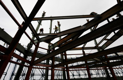 Thợ đang nối lõi thép ở tầng 93 tòa nhà One World Trade Center, ở New York.