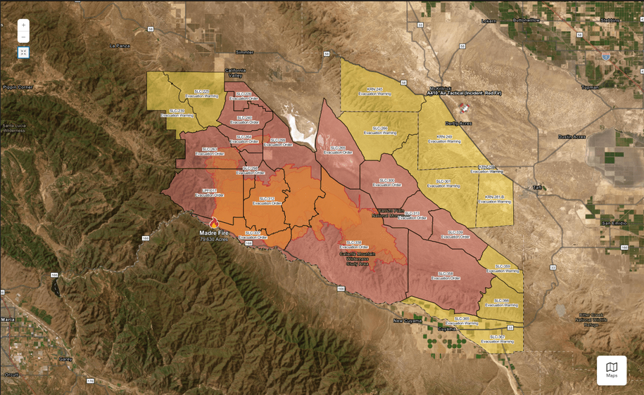 SAN LUIS OBISPO, California (NV) – Thảm họa cháy rừng Madre Fire là trận hỏa lớn nhất California tính tới thời điểm này trong năm nay, bén lửa tới 79,936 mẫu Anh, làm nhà chức trách phải ban hành lệnh di tản trên phạm vi rộng và làm không khí bị ô nhiễm ở một số khu vực thuộc miền Nam California, KTLA đưa tin.
