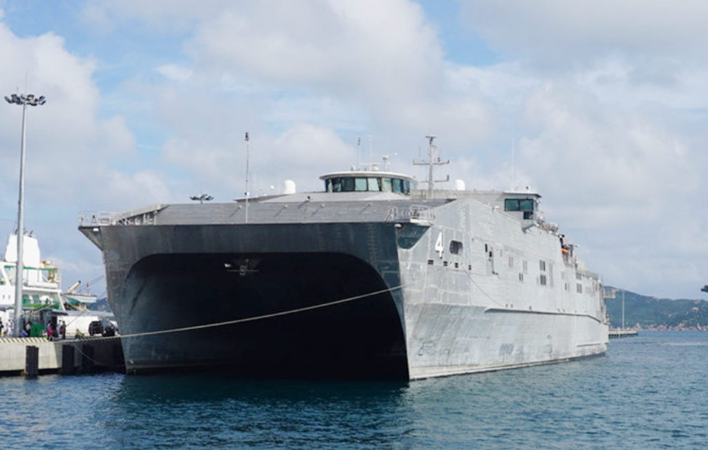 Tàu USNS Fall River của Hải Quân Mỹ tại cảng quốc tế Cam Ranh. (Hình: Báo Thanh Niên)
