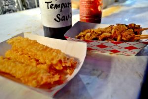 Thu hút nhiều thực khách nhất là các món ăn Nhật Bản. Qua các phim ảnh và tài liệu, văn hóa Nhật ngày càng phổ biến với giới trẻ. Các gian hàng bán món Nhật lúc nào cũng có người xếp hàng dài. Để có được món món tôm chiên xù (tempura) kiểu Nhật, phải xếp hàng đến 10 phút. Món tôm chiên có vỏ bọc rất giòn và con tôm ở trong rất ngọt. Món mực vừa dai vừa giòn, thêm chút muối chanh vào ăn rất ngon.