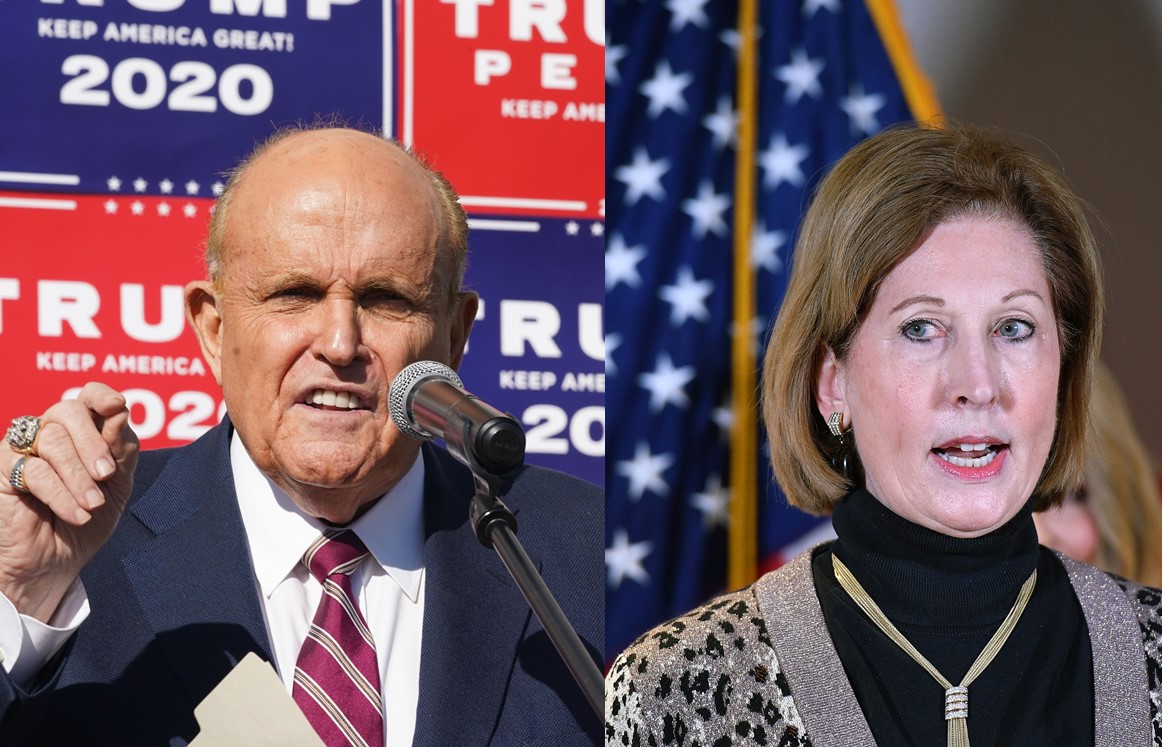 Ông Rudy Giuliani và bà Sidney Powell. (Hình: Bryan R. Smith/AFP via Getty Images & Mandel Ngan/AFP via Getty Images))
