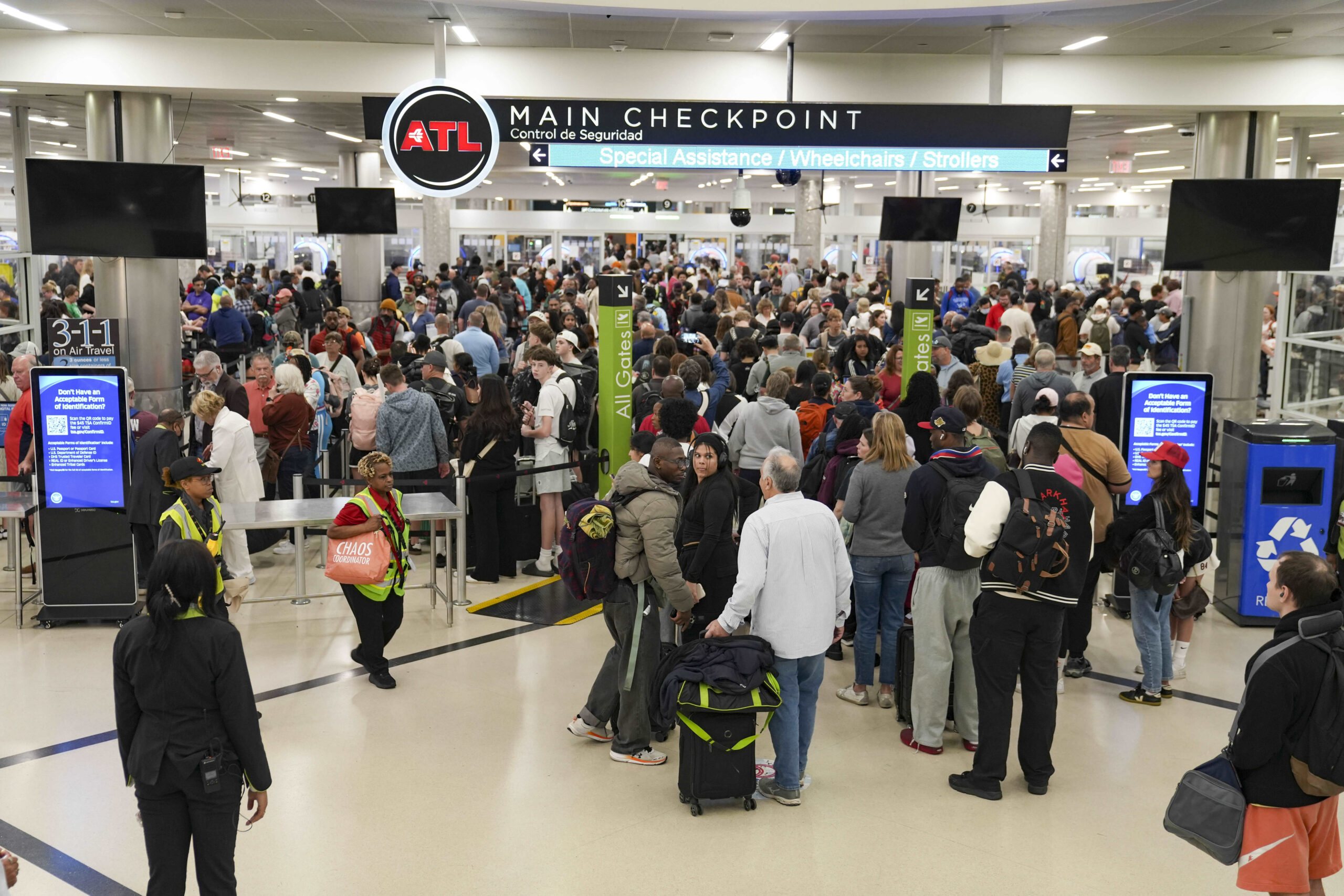 Hành khách xếp hàng dài từ sáng sớm tại phi trường quốc tế Hartsfield-Jackson Atlanta vào ngày 27 Tháng Ba, tại Atlanta, Georgia.(Hình: Megan Varner/Getty Images)