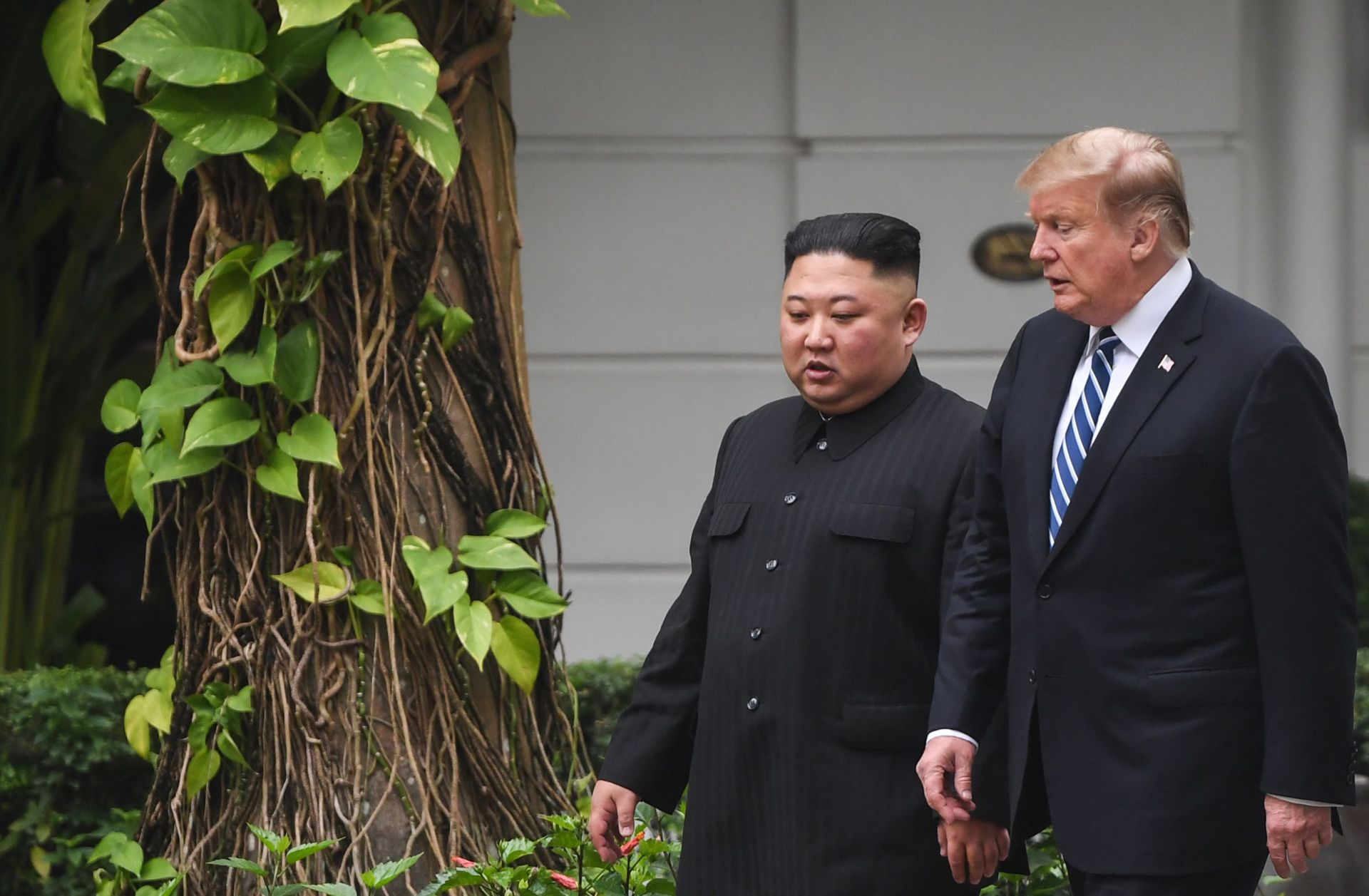 Cựu Tổng Thống Donald Trump gặp Chủ Tịch Bắc Hàn Kim Jong Un tại Hà Nội, 2019. (Hình: SAUL LOEB/AFP via Getty Images)