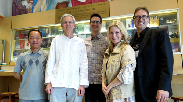 Concordance Ensemble thăm Người Việt. Từ trái: Chủ Bút Phạm Phú Thiện Giao, các nhạc sĩ: David Vayo,