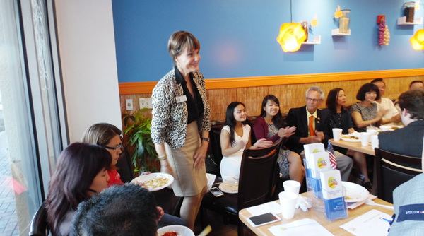 Nghị Viên Westminster Diana Carey (đứng) và Dân Biểu Liên Bang Alan Lowenthal cùng hiện diện với các bạn trẻ. (Hình: Linh Nguyễn/Người Việt)