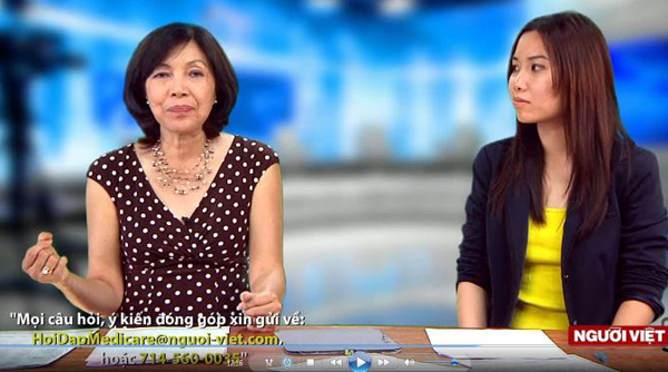 Cô Yến Tuyết (trái) trong chương trình Hỏi Đáp Medicare với phóng viên Thiên An của nhật báo Người Việt. (Hình: Người Việt TV)