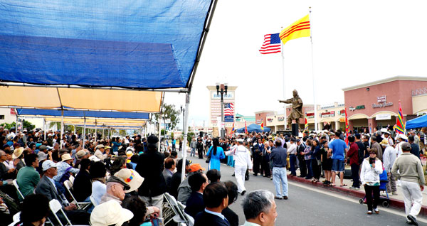 WESTMINSTER, California (NV) – Vào lúc 12 giờ trưa Chủ Nhật, 12 Tháng Sáu, đông đảo đồng hương đến tham dự Lễ Khánh Thành và An Vị Tượng Ðức Thánh Trần, do Hội Ðồng Ðiều Hành Trần Hưng Ðạo Foundation tổ chức rất trang trọng trong khu Hà Nội Plaza, Westminster.