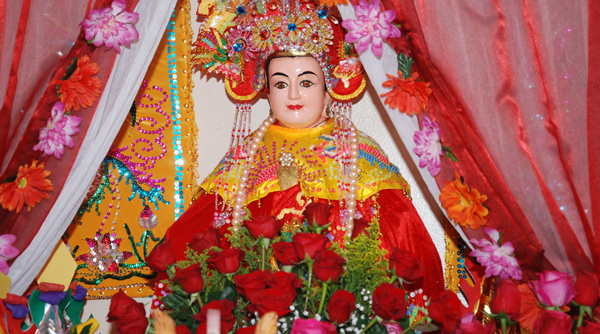 Tượng Bà Chúa Xứ núi Sam Châu Đốc tại Miếu Bà ở Nam California. (Hình: Nguyên Huy/Người Việt)