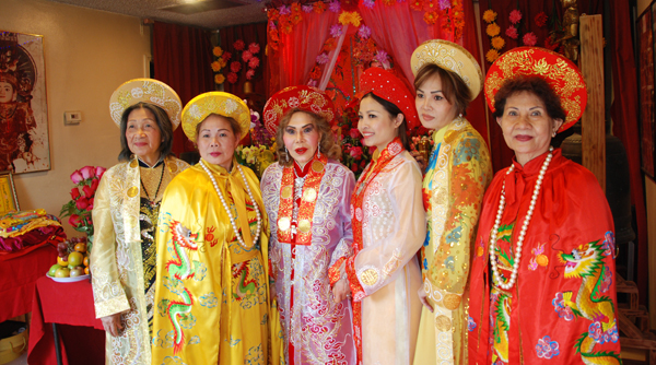 Ban Quý Tế (Bà Hội Trưởng Tuyết Hồng thứ ba từ trái) của Miếu Bà Chúa Xứ núi Sam Châu Đốc. (Hình: Nguyên Huy/Người Việt)