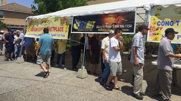 Ông Long Trần, cư dân Downey ở Los Angeles County, đứng ngay đầu hàng, cho biết ông rất thích phong cách phục vụ của nhật báo Người Việt và sự tài trợ của các doanh nghiệp.